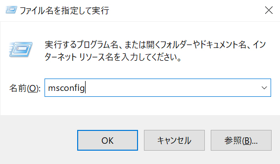 「msconfig」と入力しOKボタンを押します。
